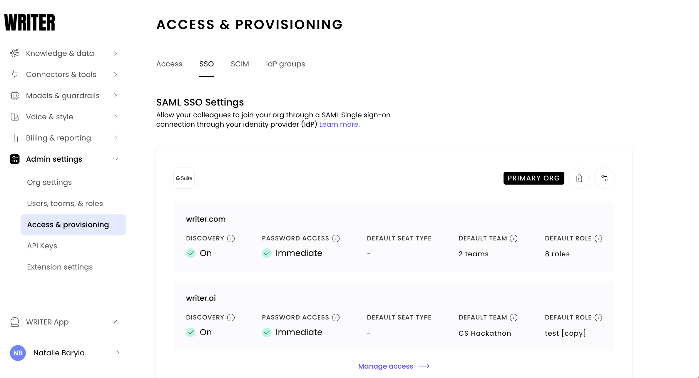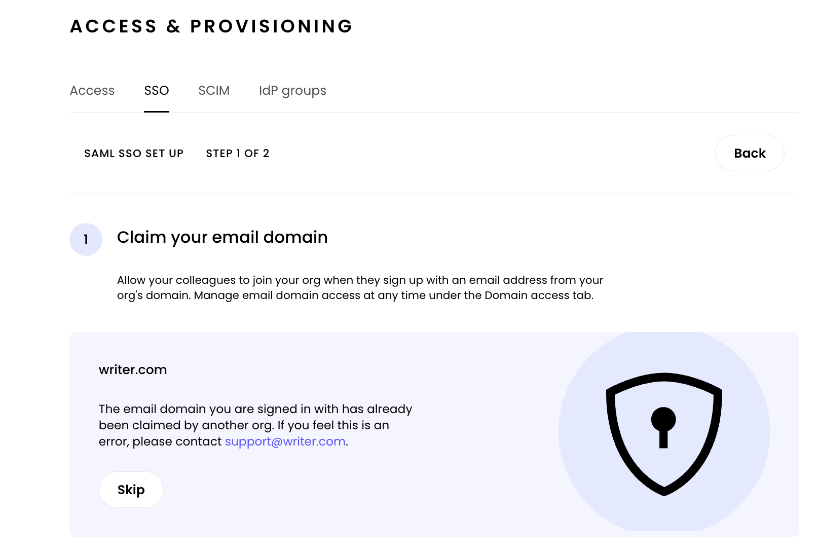 In this article, we'll show you how to set up single sign-on, so users can authenticate into WRITER easily. If you're looking for information about automatically provisioning new users, check out our article, Setting up SCIM provisioning.