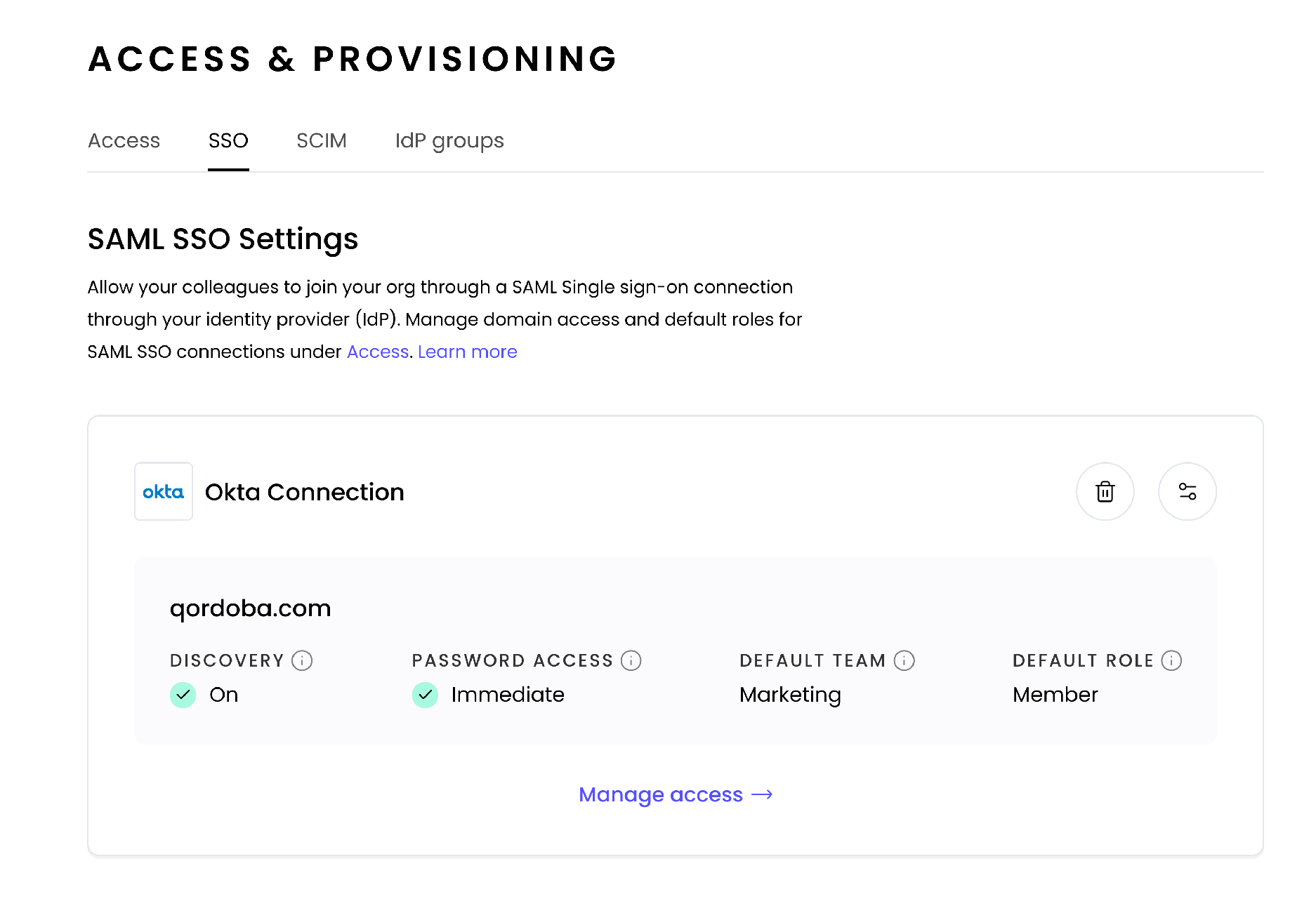 - Anyone with an org admin or IT admin role can access and edit SSO