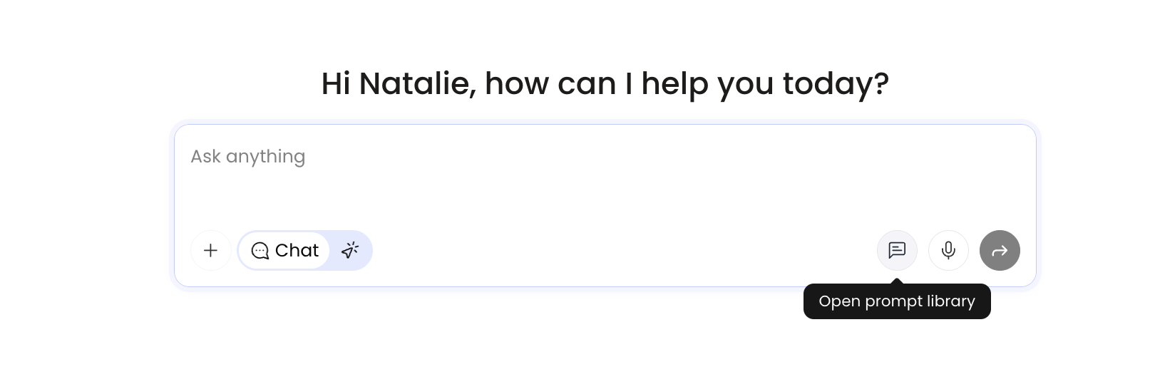 You can access the Prompt library within the input field of WRITER Agent by selecting the Prompt library icon.