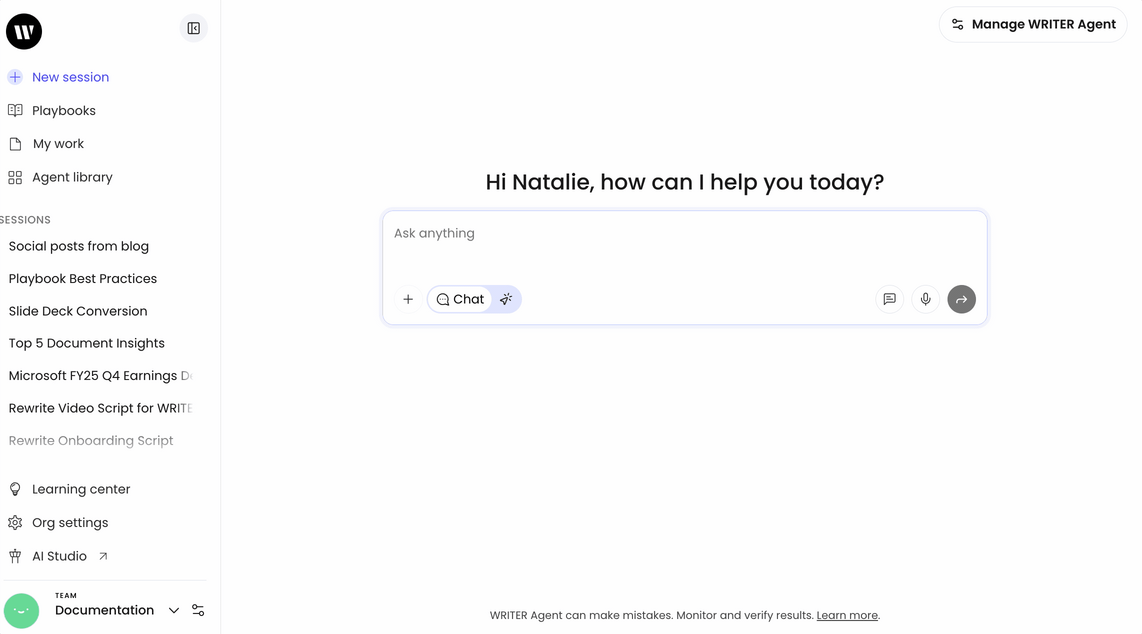 Not sure how to get started with WRITER Agent chat mode? Curious to see how other teams like yours are using WRITER to streamline their work? The Prompt library is here to help! The Prompt library contains a catalog of tried and true prompts, created by WRITER, your team, and yourself.