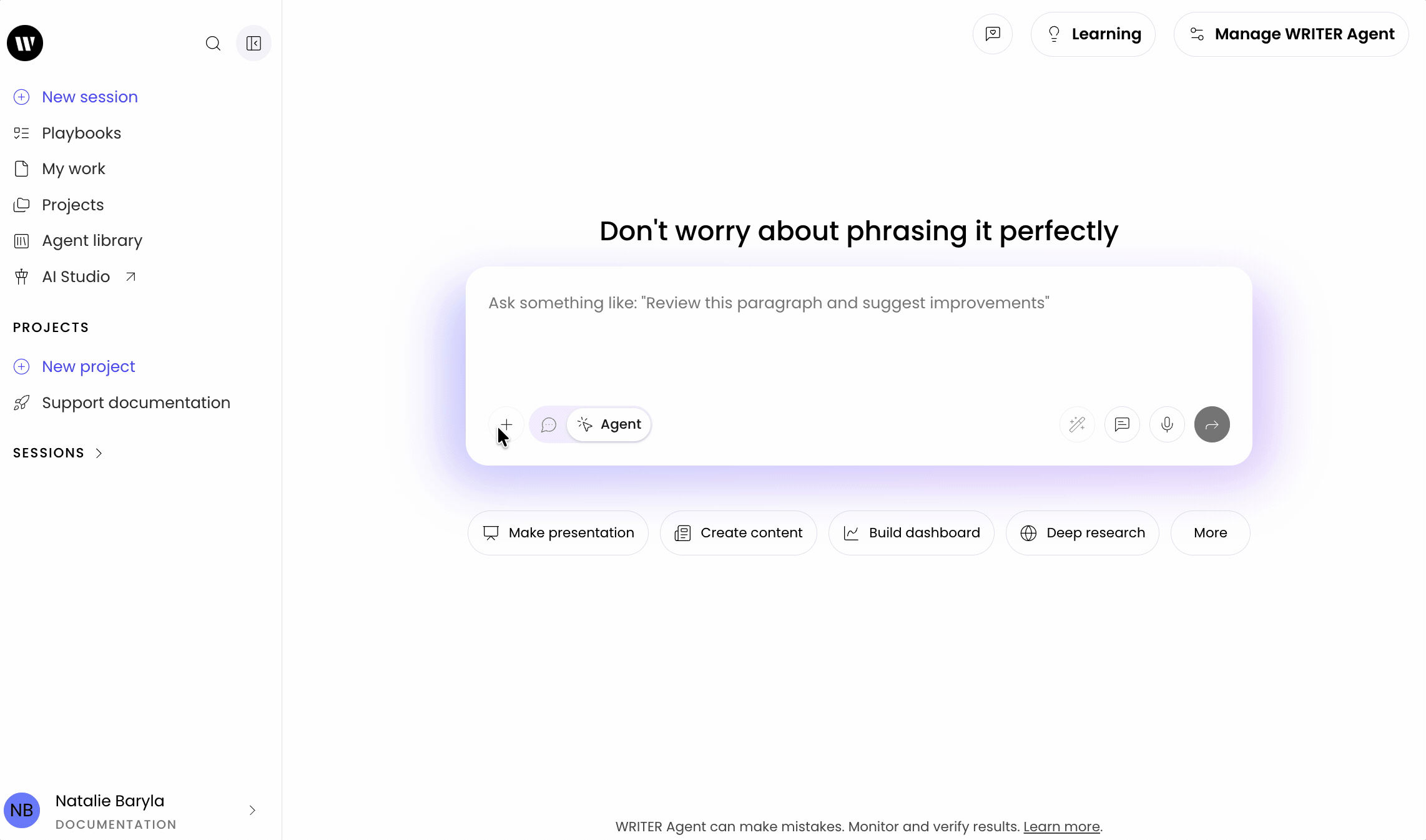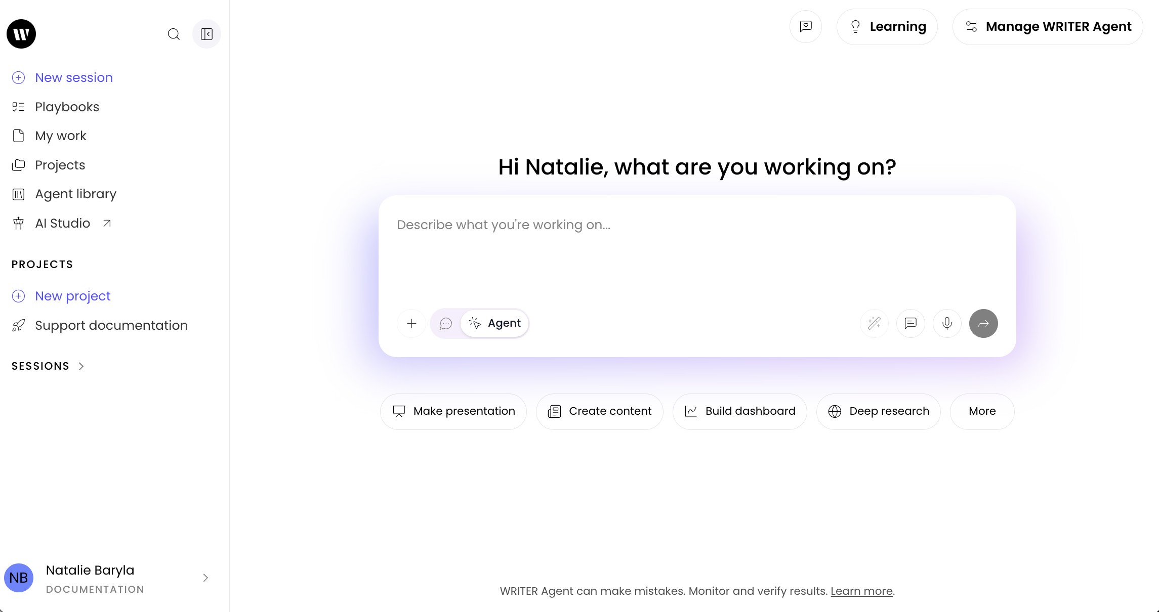 Whether you’re writing, researching, or managing complex projects, WRITER Agent helps you work smarter and deliver high-quality results consistently.