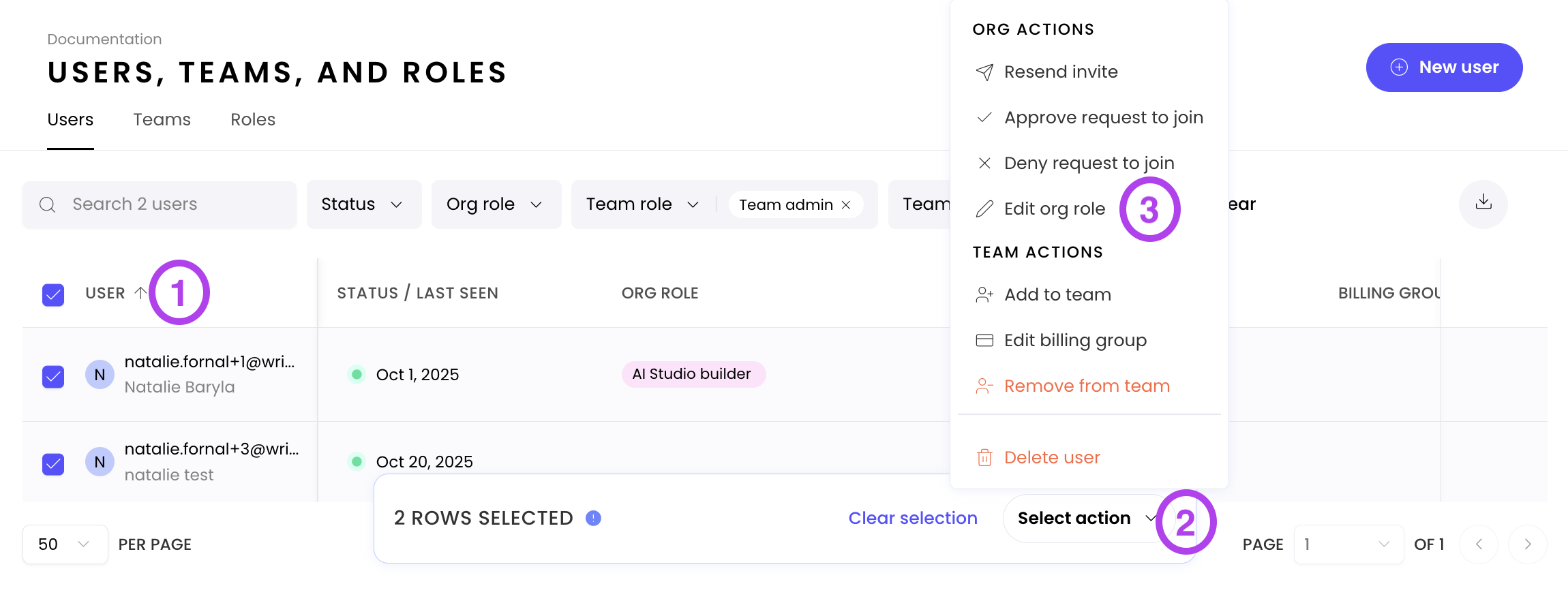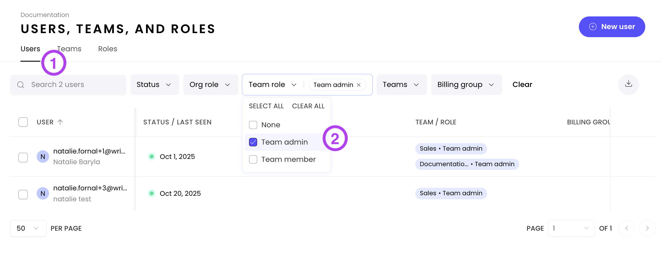 - Select the Team admin role from the Team role filter and you'll see a list of all the team admins in your org