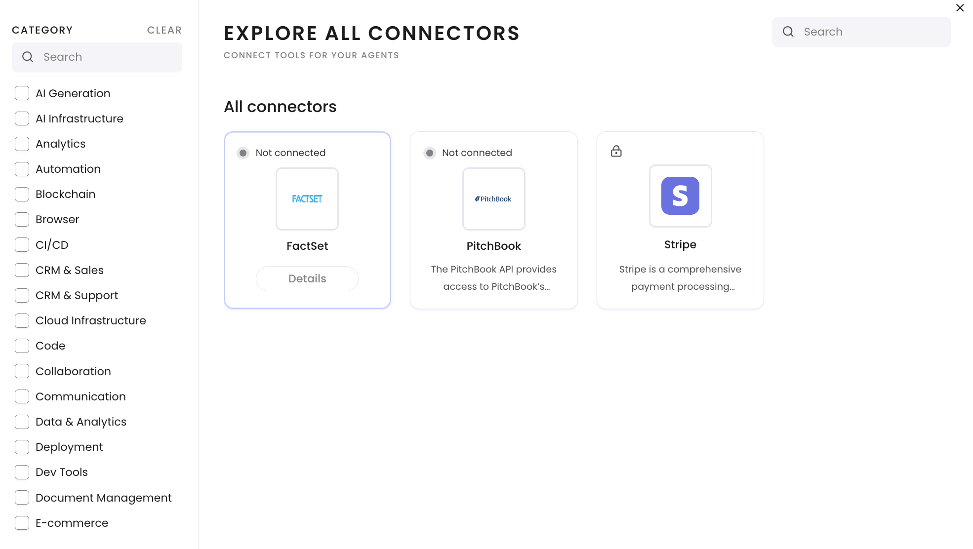 Connectors and tools will be rolling out on a rolling basis. Below is a list of connectors now available:
