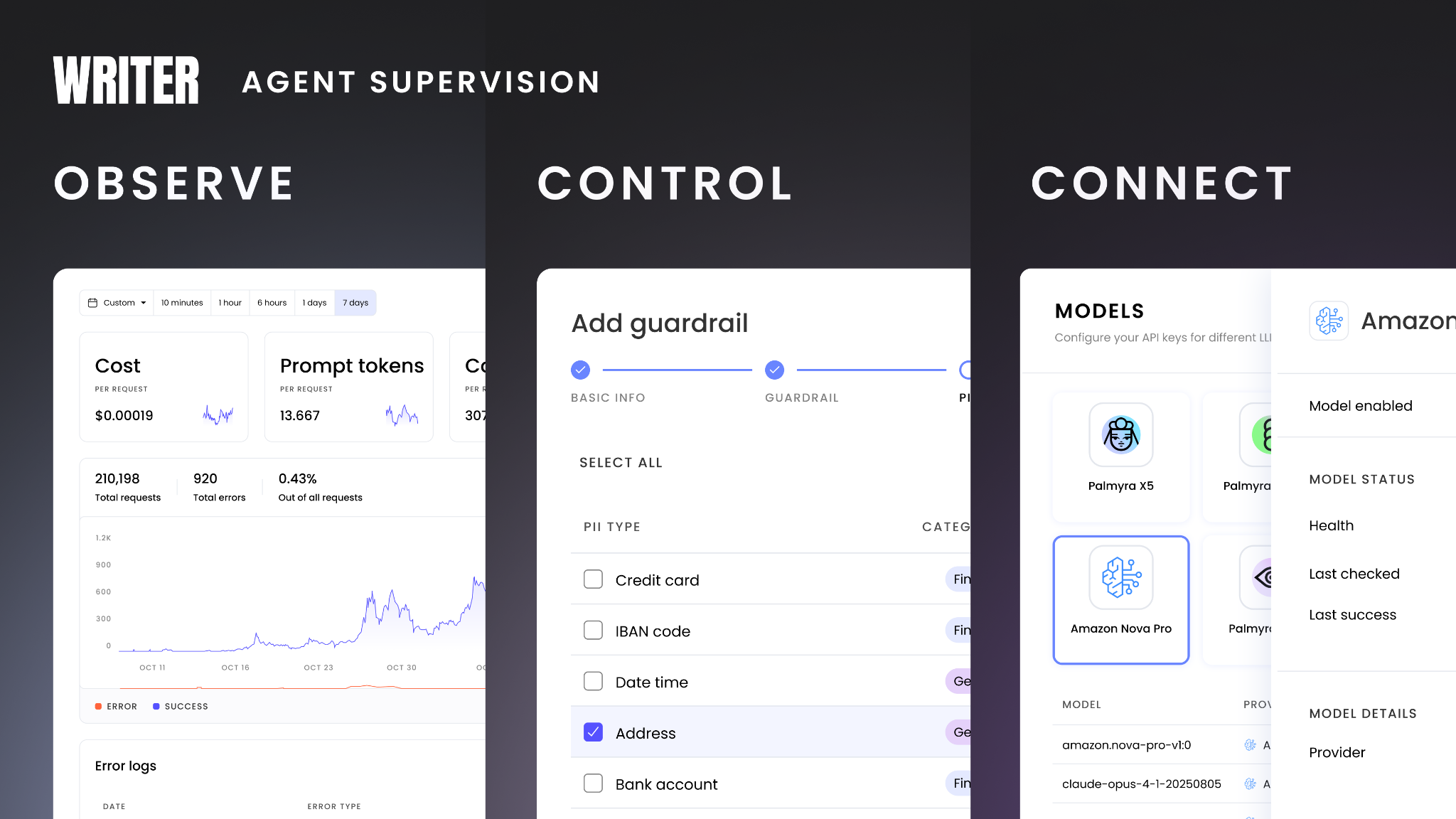 You can now use models from Amazon Bedrock to power your WRITER agents while maintaining centralized visibility and control across your entire AI ecosystem.